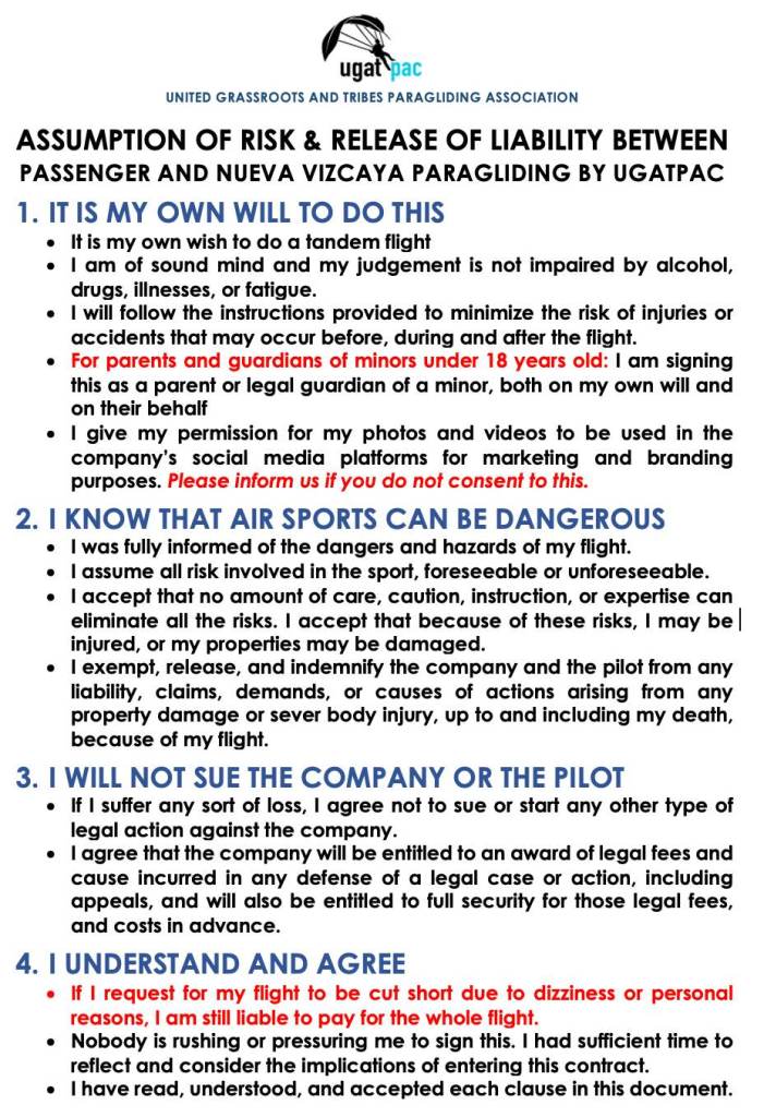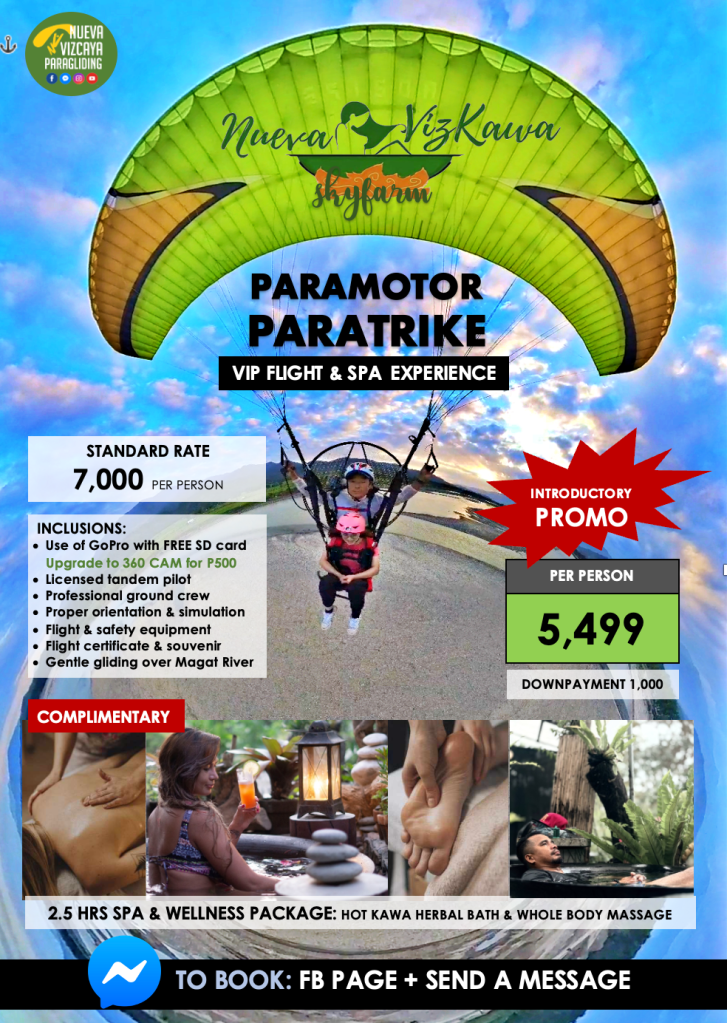 Book through or Facebook page: Nueva Vizcaya Paragliding