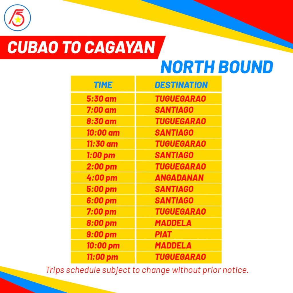 Bambang, Nueva Vizcaya Via Aritao, NV time Schedule